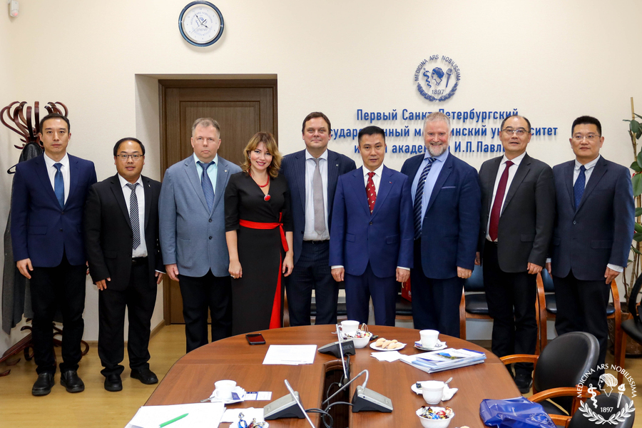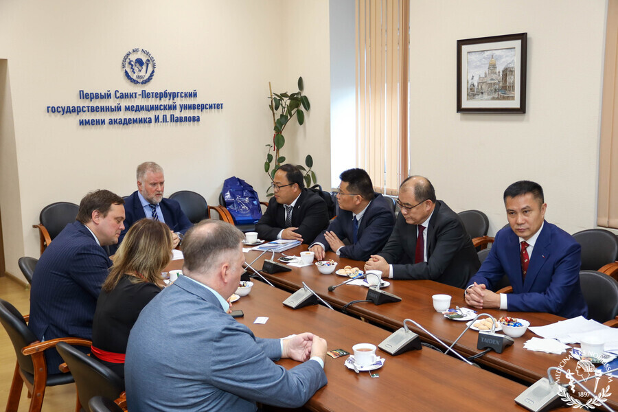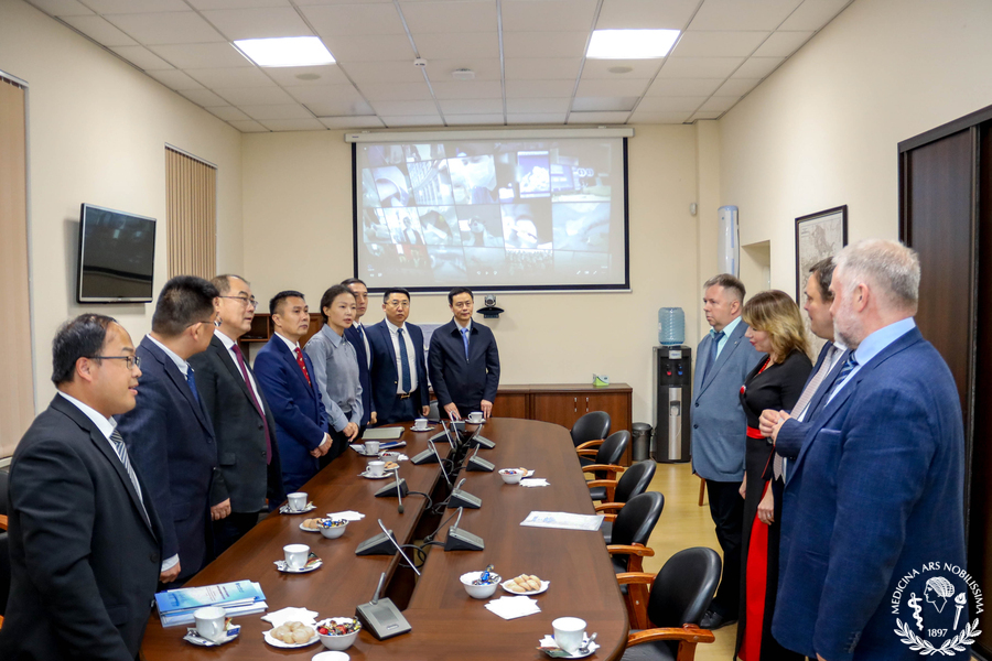 On October 17, a Chinese delegation from Xuzhou Medical University, led by Vice-Rector Liu Shenjun, visited our University. The visit was organized with the participation of the Russian-Chinese Foundation for Education and Science Development, represented by Secretary General Cui Fan. On the Russian side, the delegation was hosted by representatives of the University administration: Vice-Rector for Academic Affairs Professor A.I. Yaremenko, Acting Vice-Rector for International Relations Professor S.Yu. Borovets, Dean of the Faculty of International Students S.V. Matyushechkin, Vice-Dean V.A.Gavrilina. The purpose of the meeting was to introduce our university to Chinese colleagues and establish bilateral cooperation in scientific and educational matters. The event was held in a friendly atmosphere, and guests were shown a video about our University in English. Mr. Liu Shenjun told the history of Xuzhou Medical University and noted its leadership in China in dentistry and anesthesiology. A.I. Yaremenko expressed interest in collaborating in dentistry and developing cellular technologies. S.Yu. Borovets explained that a memorandum of understanding is a necessary first step for cooperation with foreign partners. S.V. Matyushechkin was talking about the educational process for foreign citizens at University. Plans are underway to explore the possibility of organizing student exchange programs in the form of summer schools.