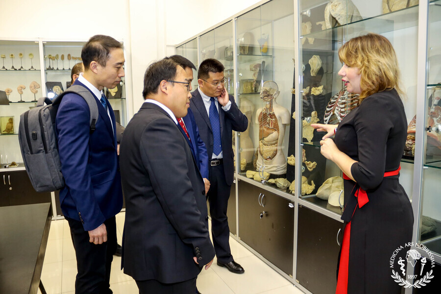 The parties exchanged contact information and souvenirs. A tour of the anatomy museum was organized for the guests, led by V.A. Gavrilina, Leading Interpreter of the Department of External Relations and Development.